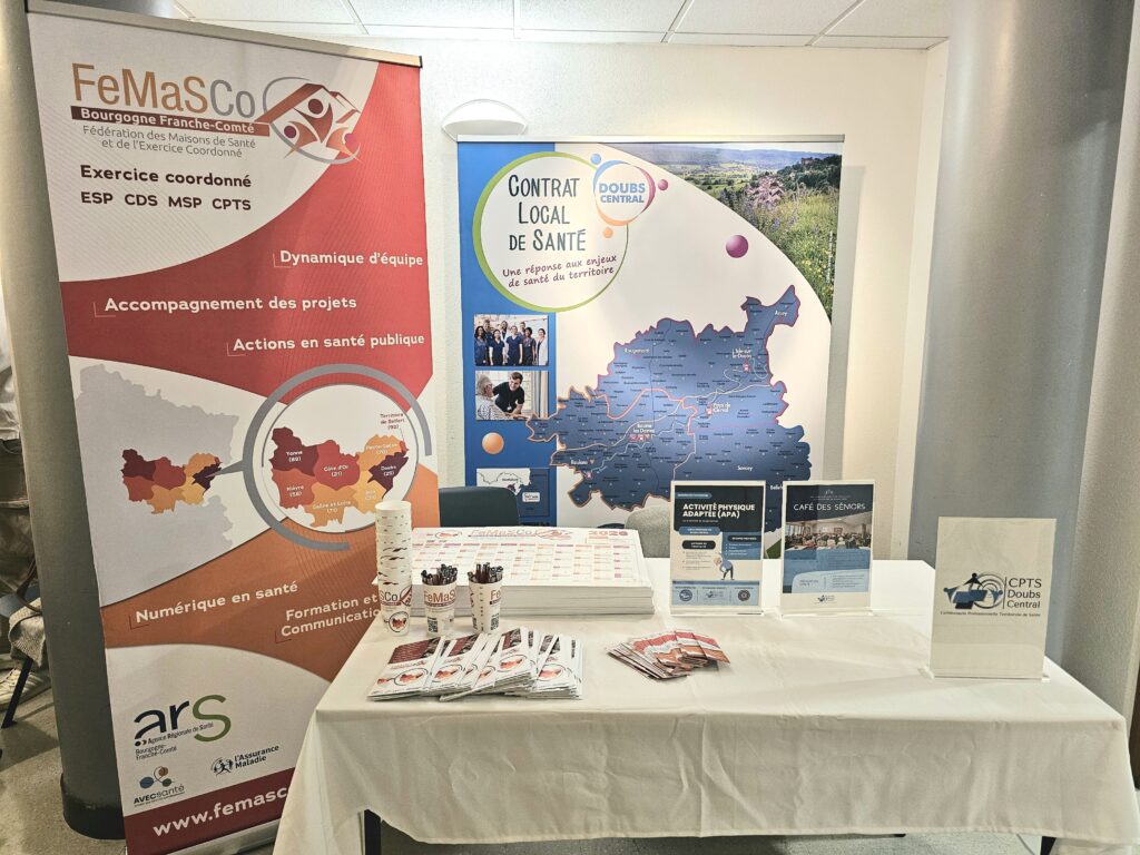 Nous souhaitons également associer et remercier nos partenaires, la FeMaSCo-BFC et le CLS du Doubs Central, que nous avons eu le plaisir de représenter sur le stand lors de cette journée et avec lesquels nous collaborons étroitement sur le territoire.